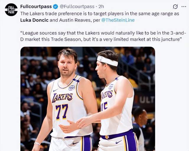 “湖人没有兴趣交易东契奇和里夫斯,管理层已将两人确立为未来后场核心,正在积极寻找和他们年龄匹配的3D侧翼拼图。”